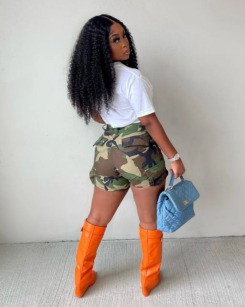 Add an urban edge to your summer look with these eye-catching camo cargo shorts. Perfect for street style or a casual day out, these shorts blend comfort, versatility, and trend-right utility details. Pair with bold boots or sneakers for an effortlessly cool vibe.