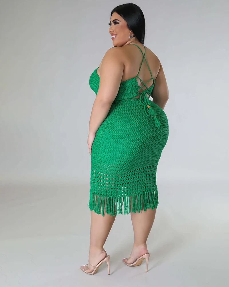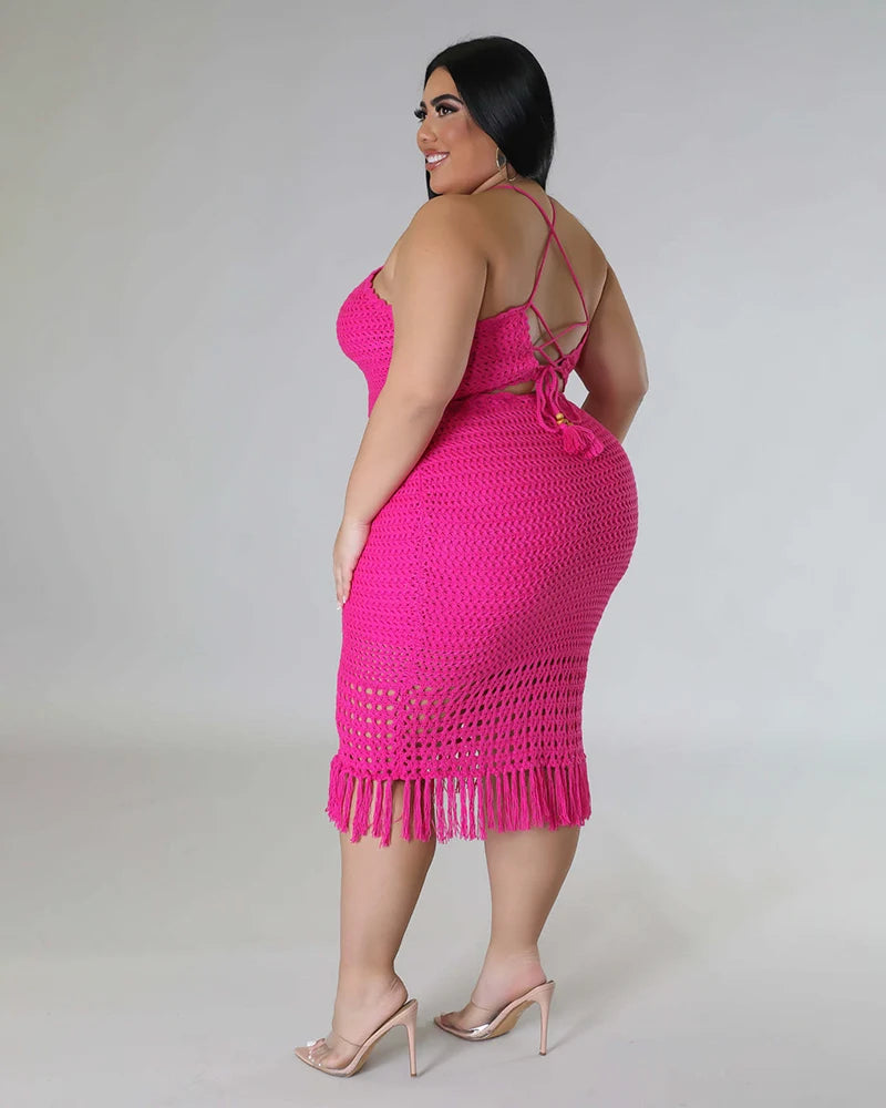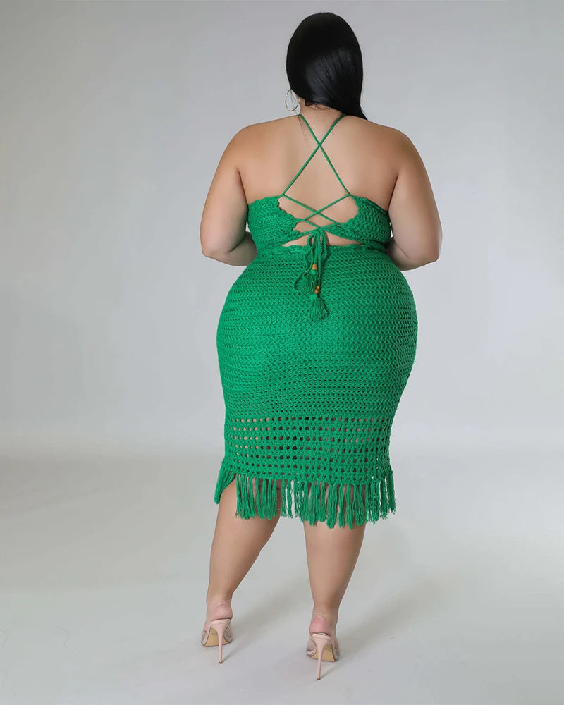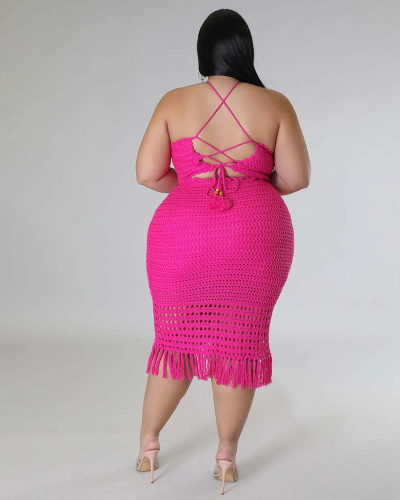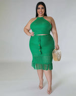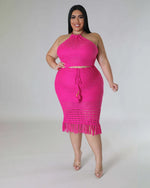 Step into summer with confidence in our Curvy Chic Crochet Two-Piece Set. Designed exclusively for curvy women, this matching halter crop top and fringed midi skirt brings a playful yet elegant touch to your vacation or weekend looks. Available in bold, vibrant colors, this set is all about showing off your personality and curves in style.