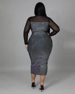 Make a bold statement in this plus size bodycon midi dress featuring chic mesh patchwork and dazzling sequin stripes. Designed to accentuate your curves, this elegant dress is perfect for evening parties, cocktail events, or any occasion where you want to stand out. The figure-hugging silhouette and sheer mesh panels create a modern, sultry look while providing comfortable stretch for all-day wear.