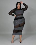Plus Size Mesh Patchwork Bodycon Midi Dress