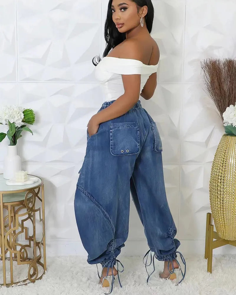 Embrace effortless cool with our Ethereal Drift Denim Cargo Jeans. Soft, durable denim meets a relaxed fit with adjustable ankle ties and roomy cargo pockets—perfect for urban wanderers who crave style and comfort.