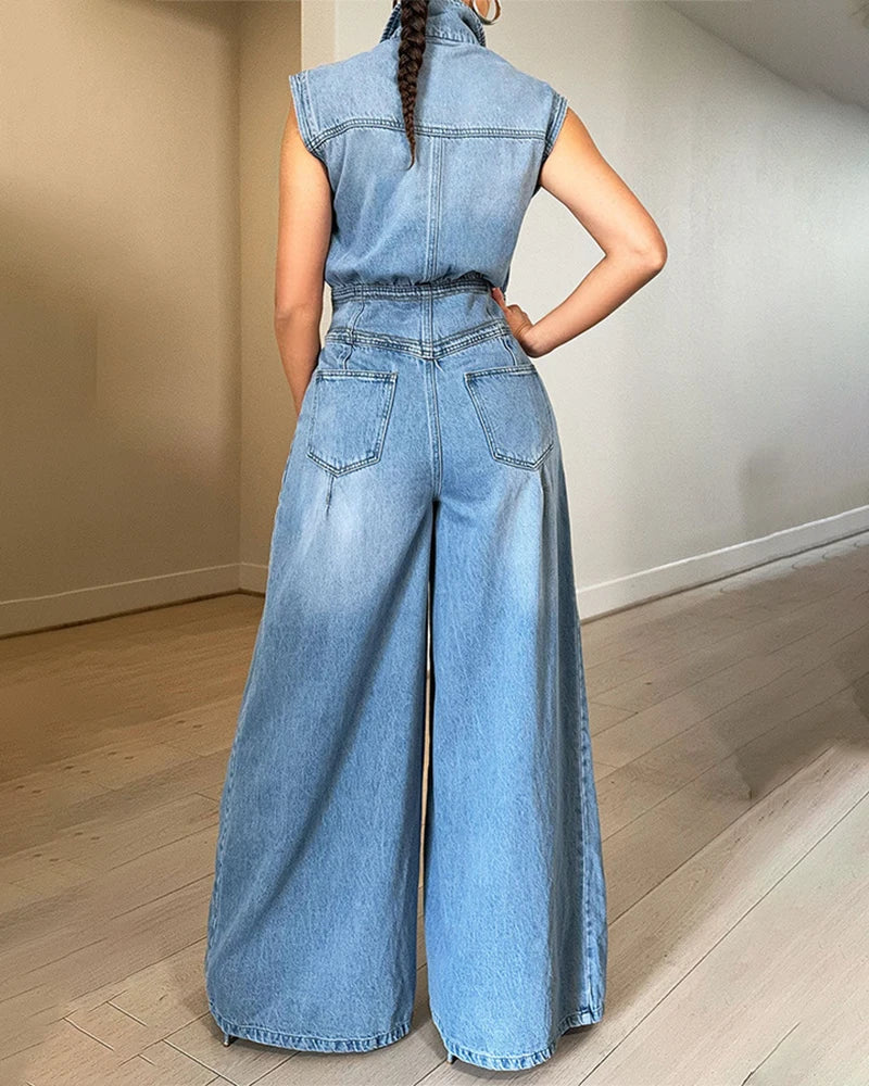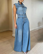 Elevate your style with the Stellar Flair Denim Jumpsuit. Featuring a structured silhouette, wide-leg fit, and sleek sleeveless cut, this piece combines comfort with statement-making retro flair. Pair it with heels or sneakers for instant effortless cool.