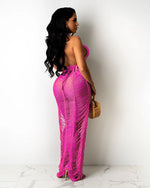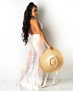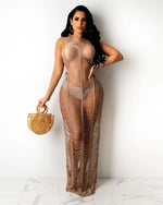 This daring piece features a see-through distressed mesh design and a sleek halter neckline, blending modern edge with sultry appeal. Perfect for club nights, beach parties, or turning heads on vacation.
