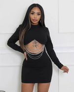 Turn heads and own the night in our Glam Allure Crystal Cutout Mini Dress. This statement piece features a bold front cutout accented with cascading crystal chains, designed to celebrate your curves and exude confidence. Perfect for parties, birthdays, or any occasion where you want to stand out.