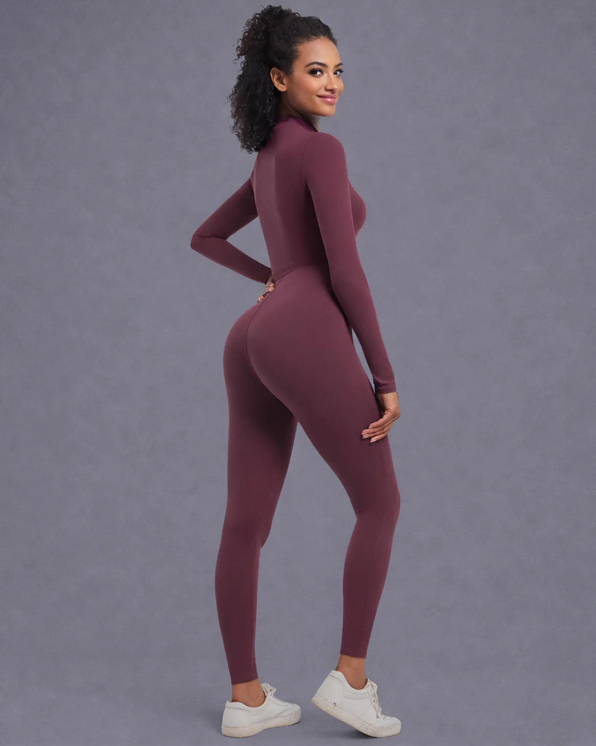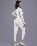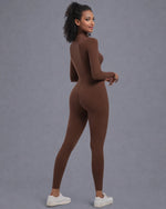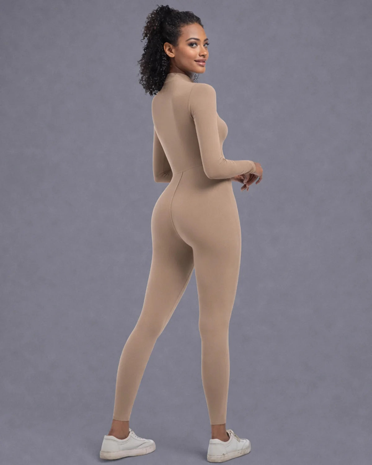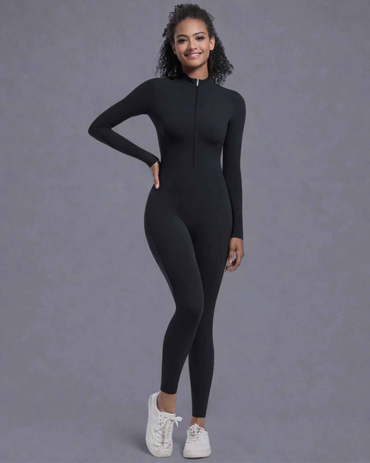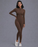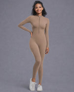 Designed to move with you, the Nova Sculpt Zip-Up Jumpsuit blends sleek style with second-skin comfort. Crafted from a breathable stretch fabric, this one-piece hugs your curves while offering full flexibility for workouts, errands, or styled street looks.