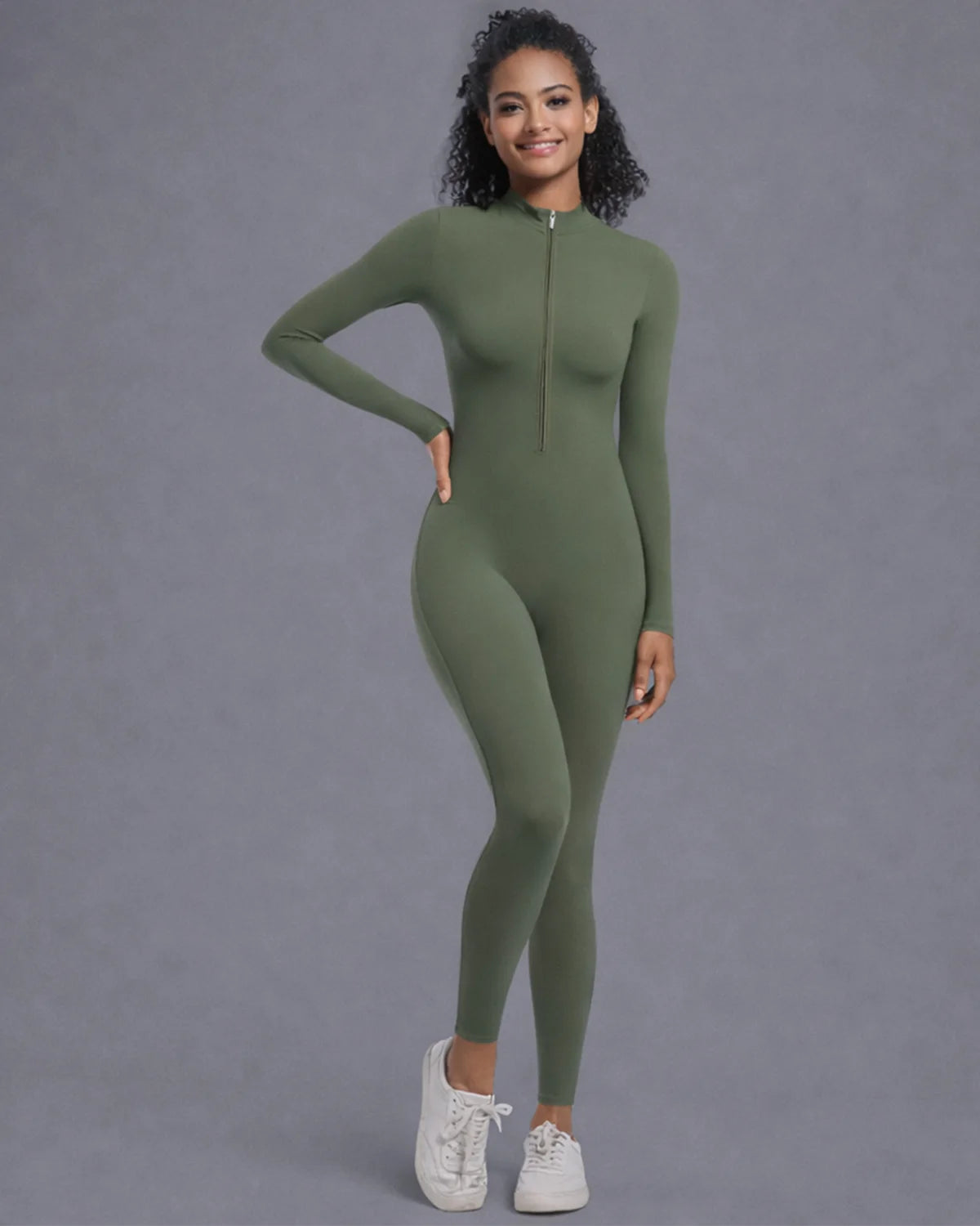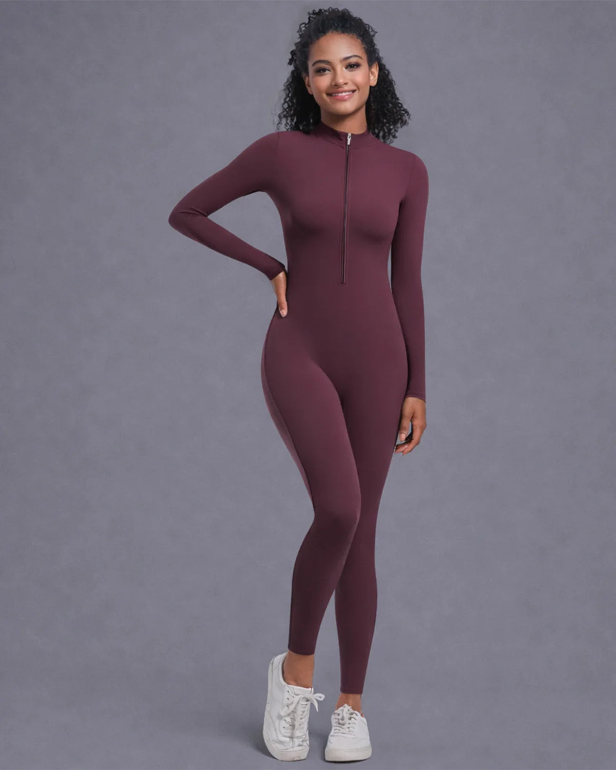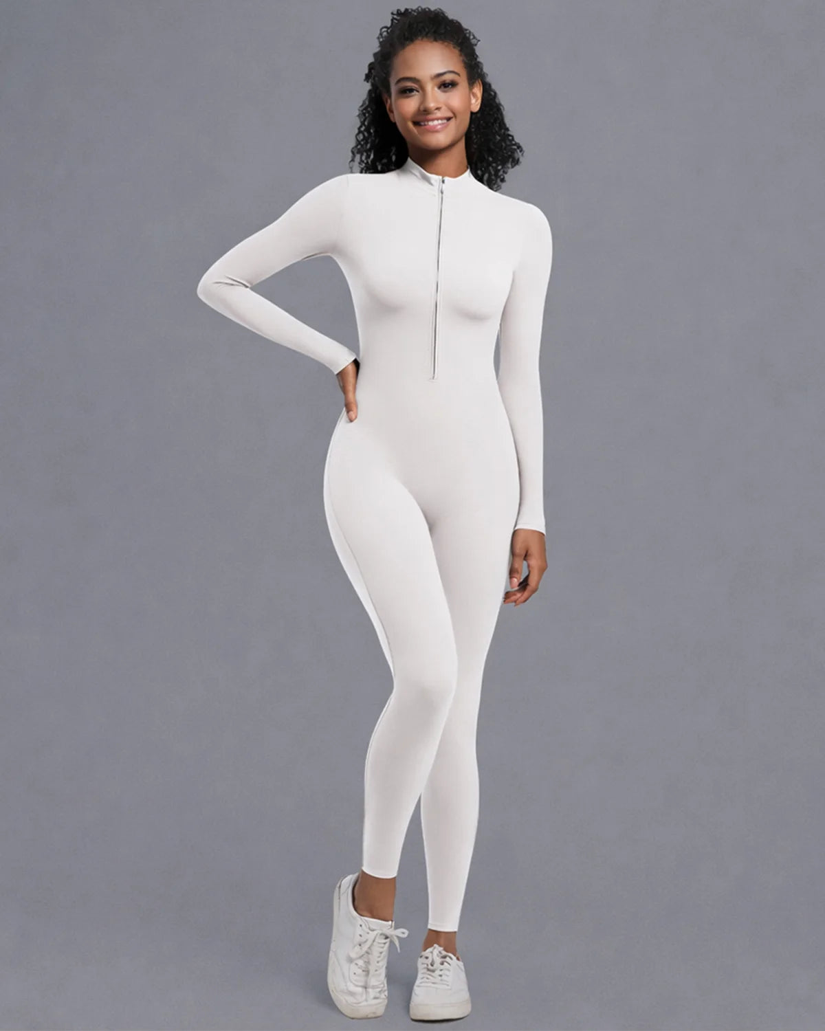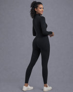Designed to move with you, the Nova Sculpt Zip-Up Jumpsuit blends sleek style with second-skin comfort. Crafted from a breathable stretch fabric, this one-piece hugs your curves while offering full flexibility for workouts, errands, or styled street looks.