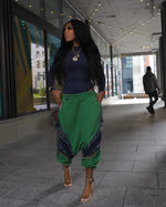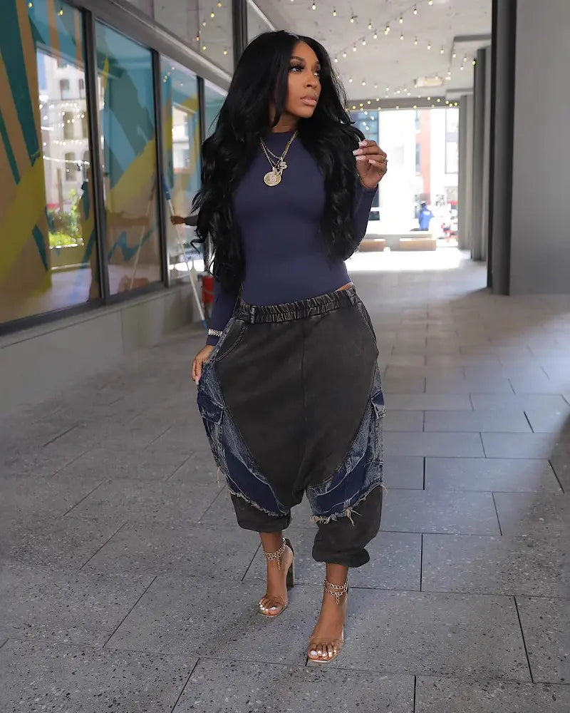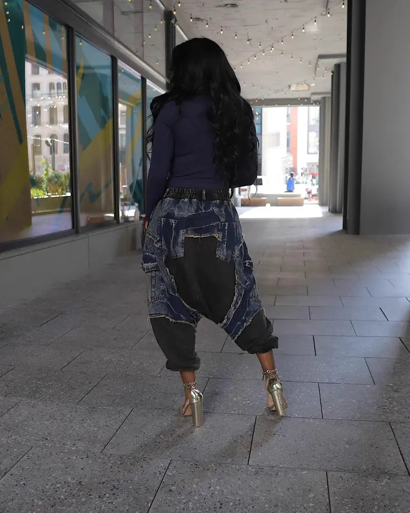 Bold, urban, and effortlessly cool — the Nyasia Harem Joggers bring a statement twist to casual style. With exaggerated drop-crotch tailoring, denim patchwork accents, and a slouchy jogger fit, they balance comfort with street-chic edge. Pair with heels for standout flair or sneakers for an easy everyday vibe.