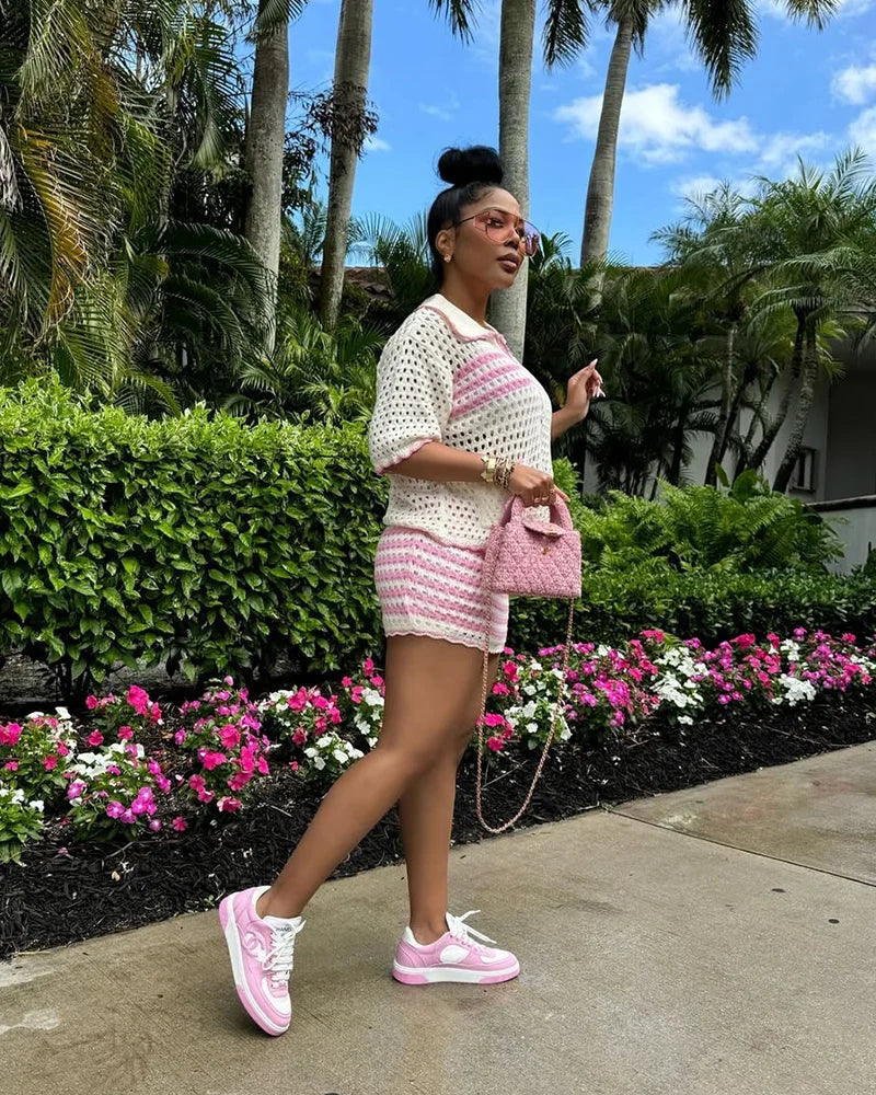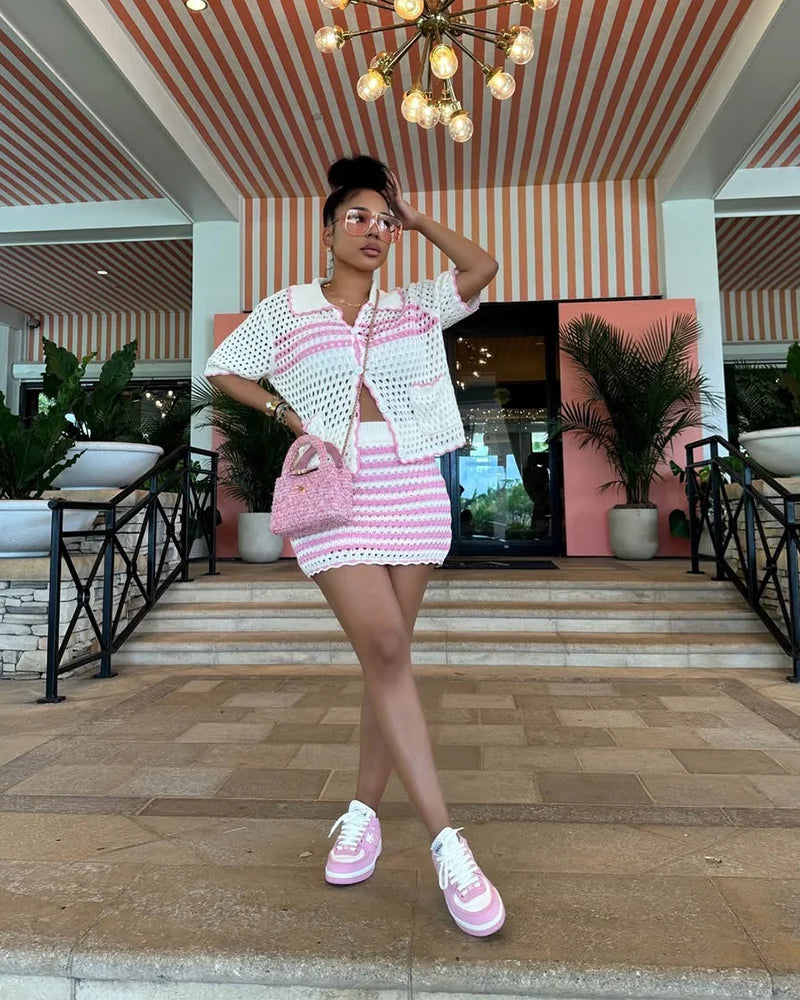 Add a dash of fun to your wardrobe with this Candy Stripes Crochet Set. Featuring a classic button-up cardigan and matching mini skirt in vibrant, candy-colored stripes, it’s your go-to for fresh, flirty, and effortless style.