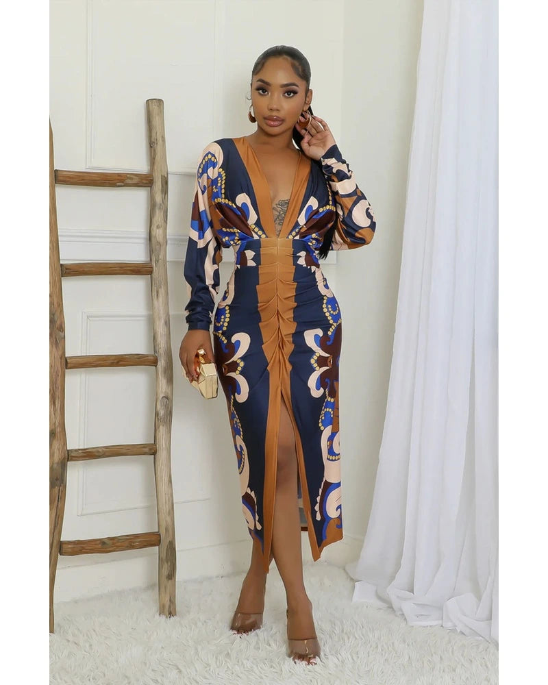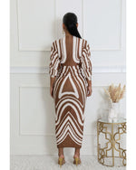 Own your moment in the Art Deco Midi Dress. Bold geometric patterns and a curve-loving silhouette make this the perfect statement piece for dinner dates, parties, or wherever you want to stand out.