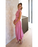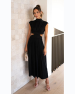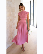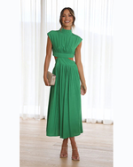 Bring sunshine to any occasion in the Sunlit Muse Midi Dress. This dreamy, high-neck midi features playful cutouts at the waist, soft cap sleeves, and a full, floaty skirt that moves beautifully with every step. Available in uplifting pastel hues, it’s the perfect choice for garden parties, brunch, or spring weddings.
